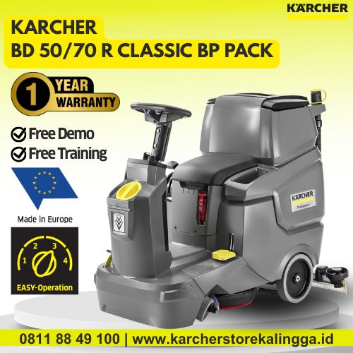 Karcher BD 50/70 R Classic Bp Pack adalah mesin scrubber dryer tipe ride-on yang di rancang untuk pembersihan area sedang hingga luas dengan hasil maksimal, cepat, dan efisien. Dengan desain ringkas, operator dapat bermanuver dengan mudah bahkan di area yang sempit.